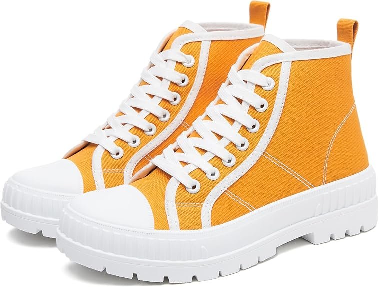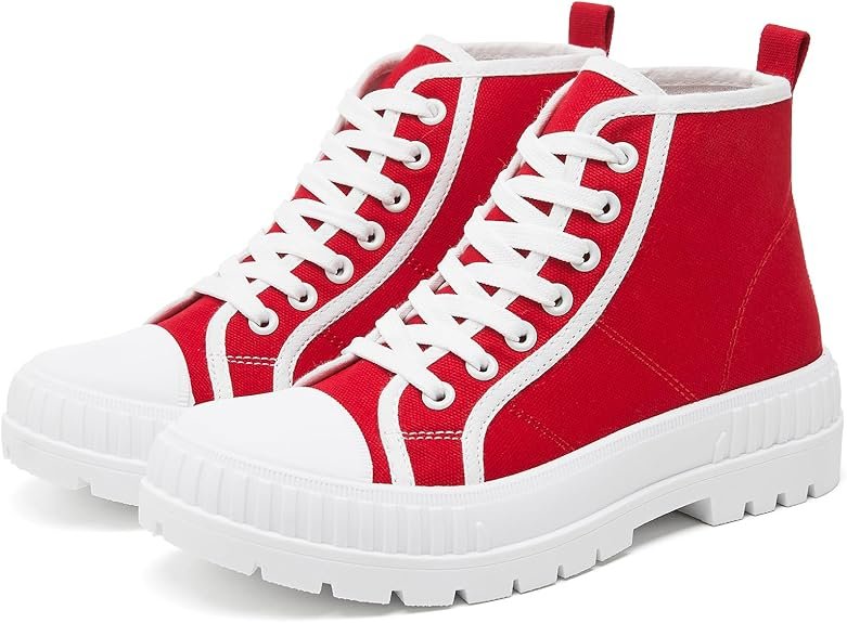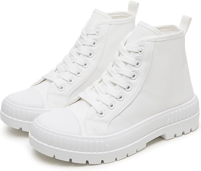 Rominz Women’s White Platform Sneakers Fashion High Top Canvas Shoes for Women Black Lace-Up Canvas Sneakers Casual Platform Tennis ShoesAbout this item