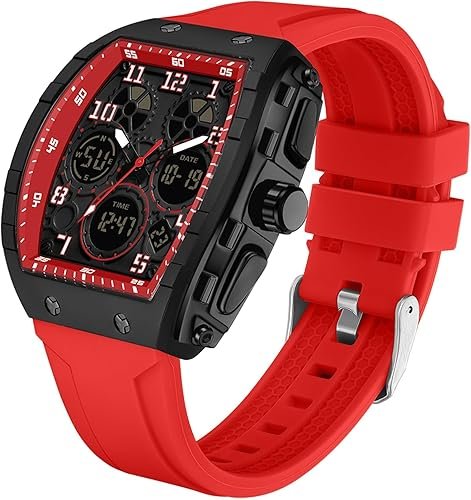 Be the first to review “Watches for Men Unique Rectangle Relojes para Hombres White Wristwatch with Digital Analog Dual Time Display Countdown Stopwatch Punk Cool Design 5ATM Waterproof”